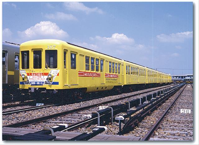 昭和55年に、冷暖房設備を備えた5000形を1編成試験的に導入した後、57年の高畑開通の際には一挙に10編成60両を導入しました。その後も、快適性を向上させるために冷暖房車両の導入を続けました。なお、地下鉄最初の車両である100型は、5000形への買い替えにより、順次、姿を消し、最後まで残った107、108号車も60年8月29日に最後の運行を終えました。