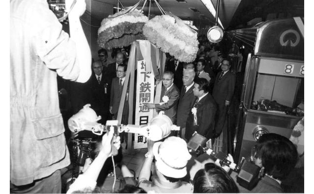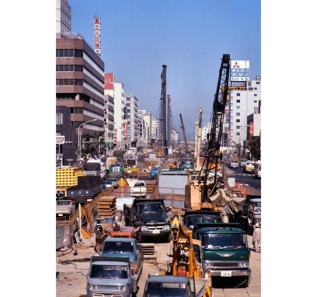 伏見・八事間の開通から1年半後の昭和53年10月1日に、八事・赤池間(5.4km)が開通しました。この区間のうち、土地区画整理事業と並行して建設を進めた塩釜口から赤池にかけては、素掘式開削工法で施工しました。また、植田、原、平針の各駅へのバスターミナル設置に合わせてバス路線を再編成し、地下鉄を基幹とする路線網の整備を進めました。