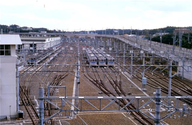 昭和52年3月の伏見・八事間開通時には、八事駅に仮車庫を設けて車両の検査・修繕を行っていました。その後、53年10月の八事・赤池間の開通に伴い、鶴舞線の車両基地として、地下鉄では全国的にも例のない敷地面積13万2千平方メートル、車両留置能力320両という大規模な日進工場を開設しました。