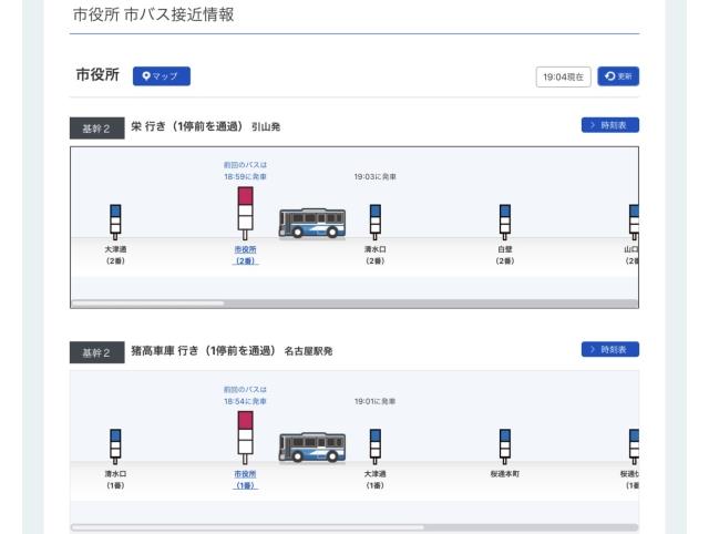 現在の市バス接近情報