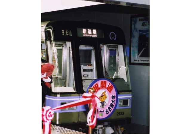 大曽根・砂田橋間の開通から約4年後の平成15年12月13日、砂田橋・名古屋大学間(4.5km)が開通しました。名古屋大学駅では、大学内に設置されている多くの精密機器に工事の影響が及ぶ恐れがあることから、大学側と共同で振動モニタリングシステムを構築し、大学内の精密機器に影響を与えるような振動を予測し、振動をともなう作業の実施にあたっては、施工時間帯を大学側と調整するなどの対策をとりました。
